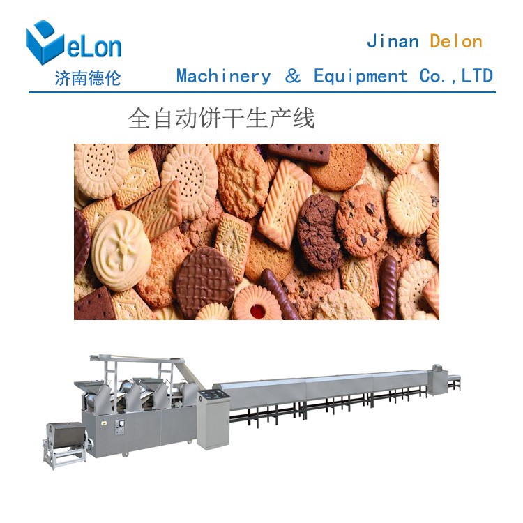 自动饼干生产线系本公司消化吸收日本技术研制而成的,设备设计新颖、结构紧凑、自动化程度高,从进料压延、成型、废料回收、烘干、喷油、冷却全自动一次性完成、本公司,为用户提供上百种模具及几十种工艺配方,通过改变模具及工艺配方可生产市场上流行的各种高档饼干,如奶油饼干、夹心饼干、超薄饼干、苏打饼干、动物饼干、多维饼干、蔬菜饼干等。
